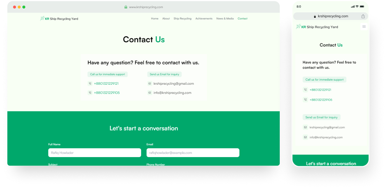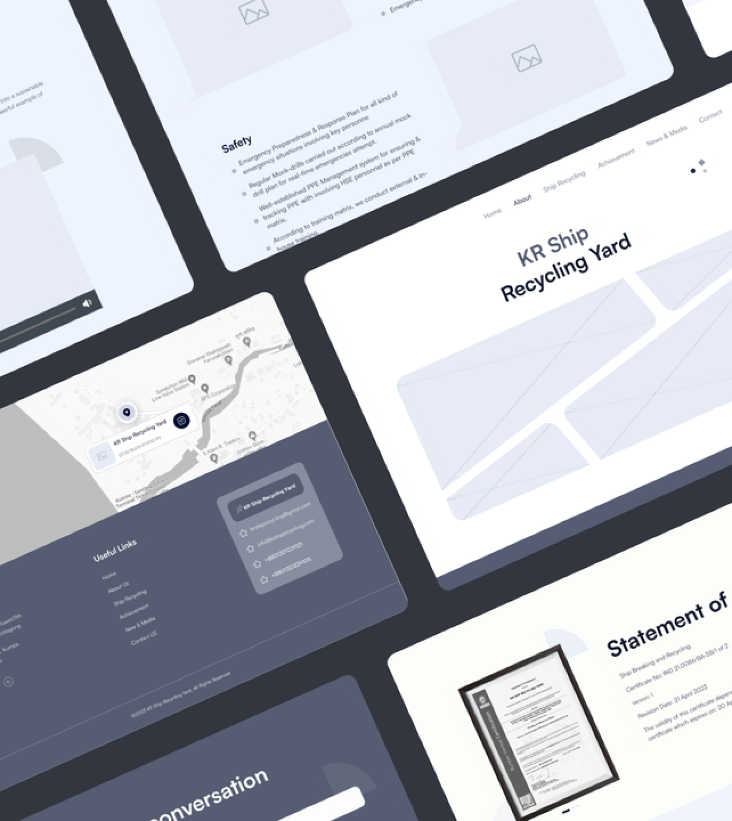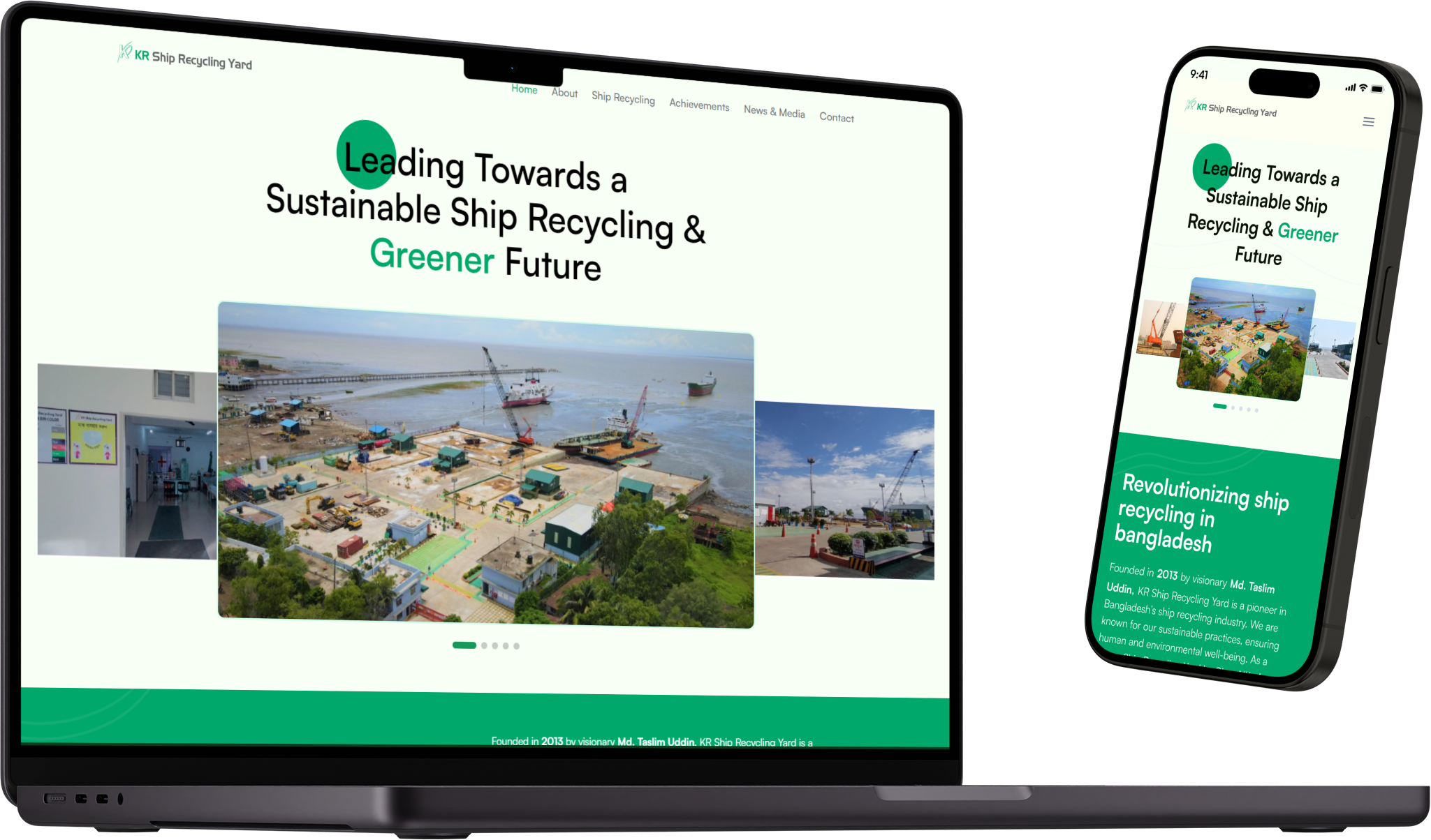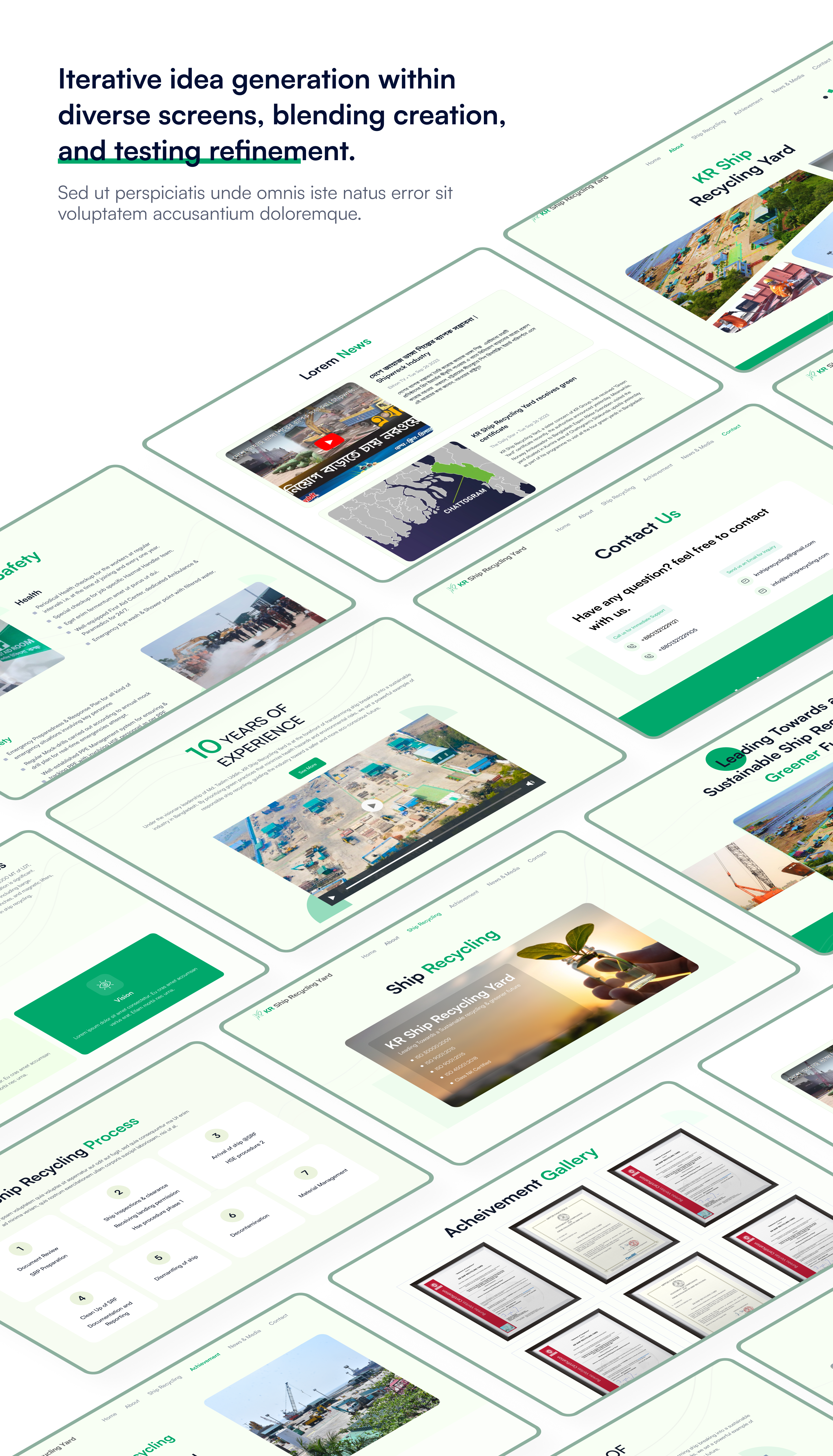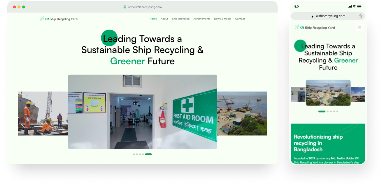 The KR Ship Recycling Yard website project was envisioned as an initiative aimed at developing a website that aligns with the company's refreshed brand identity centered around sustainability, encapsulated by the "Going green" ethos. The primary objective was to design a platform that not only reflects this commitment but also effectively showcases the company's overview along with its notable achievements.